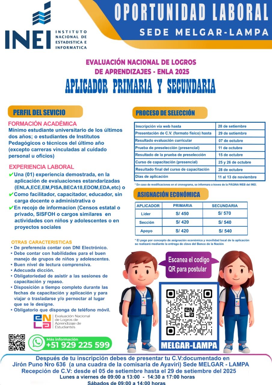 EVALUACIÓN NACIONAL DE LOGROS DE APRENDIZAJE - ENLA 2025. APLICADOR PRIMARIA - SECUNDARIA